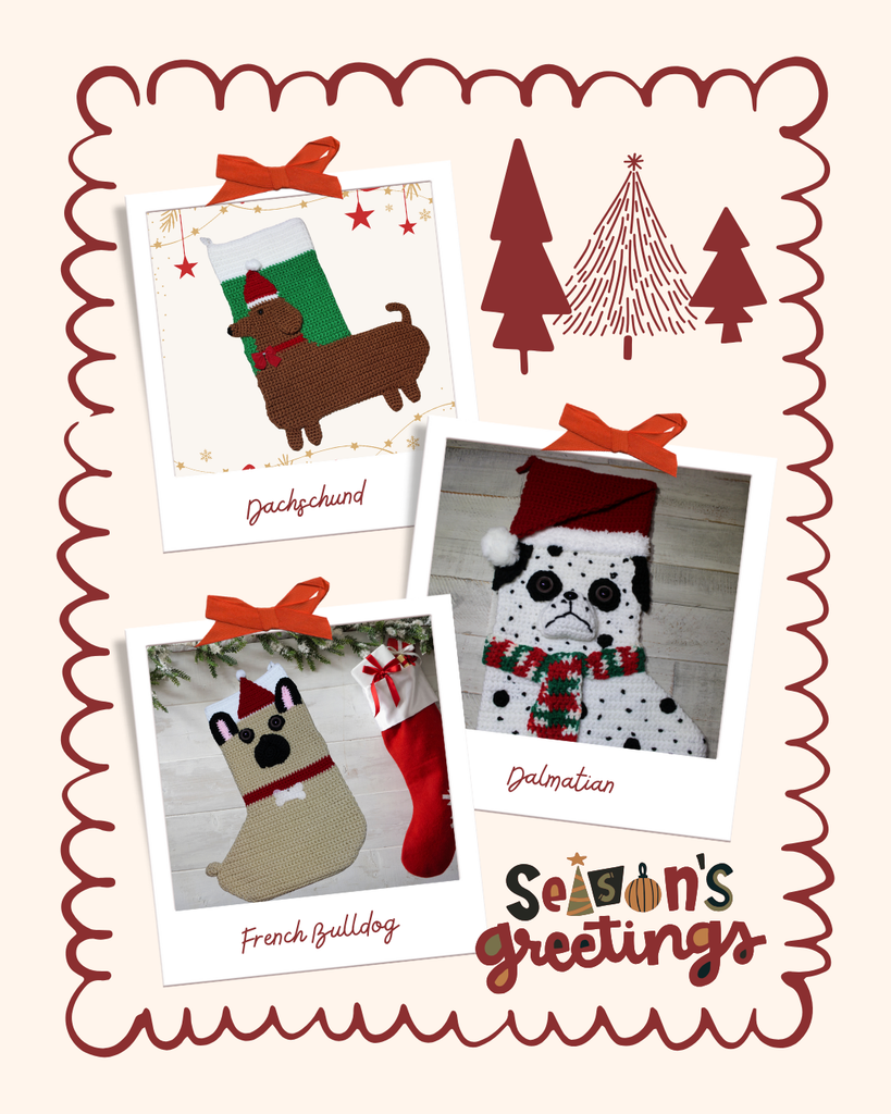 Celebrate the holidays with a whole pack of festive fun! This crochet pattern eBook includes multiple dog-themed Christmas stocking patterns, each inspired by your favorite furry friends. From playful pups to loyal companions, every design captures the heart and personality of beloved dog breeds—perfect for decorating your mantle or gifting to fellow dog lovers.