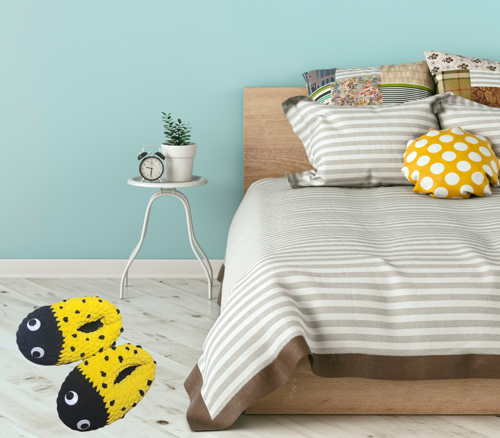 For adult size ladybug slippers crochet pattern, please visit Red Ladybug Crochet Slipper Pattern: Adult Sizes PDF Download – My Fingers Fly