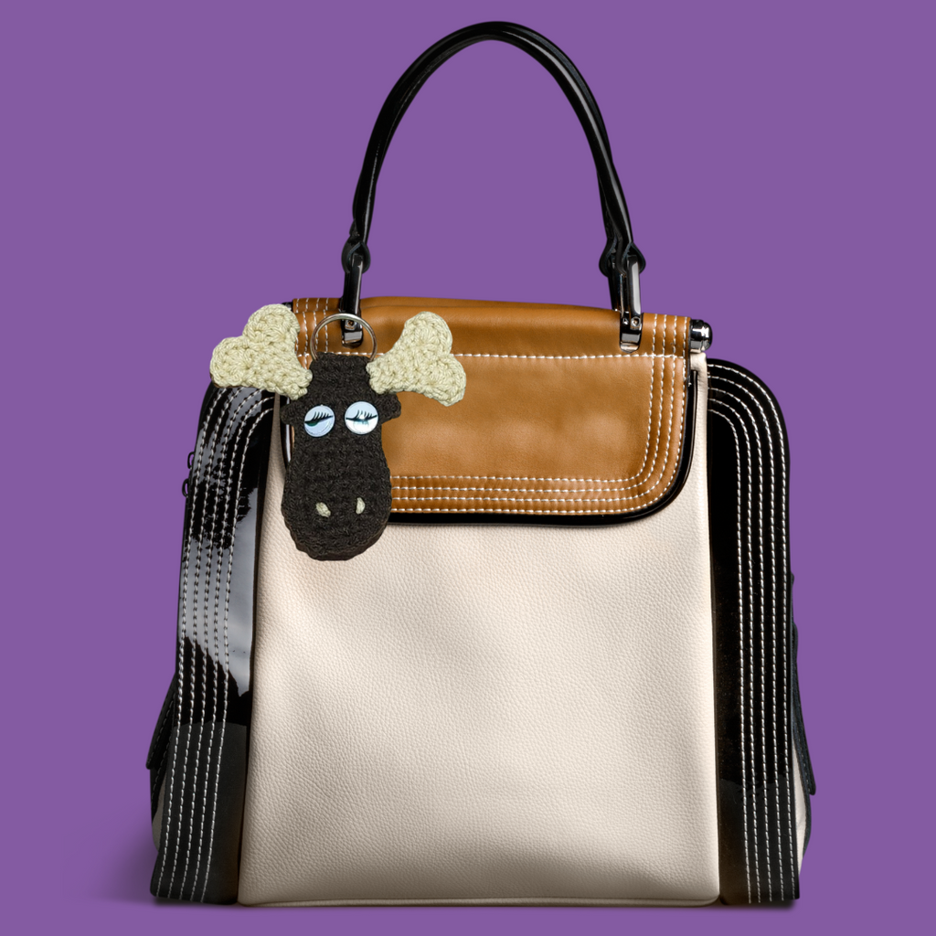 This moose keychain is a fun and stylish way to show your love of the great outdoors. The keychain is crocheted by hand using acrylic yarn. The moose head is attached to a sturdy metal ring, making it easy to attach to your keys or backpack.