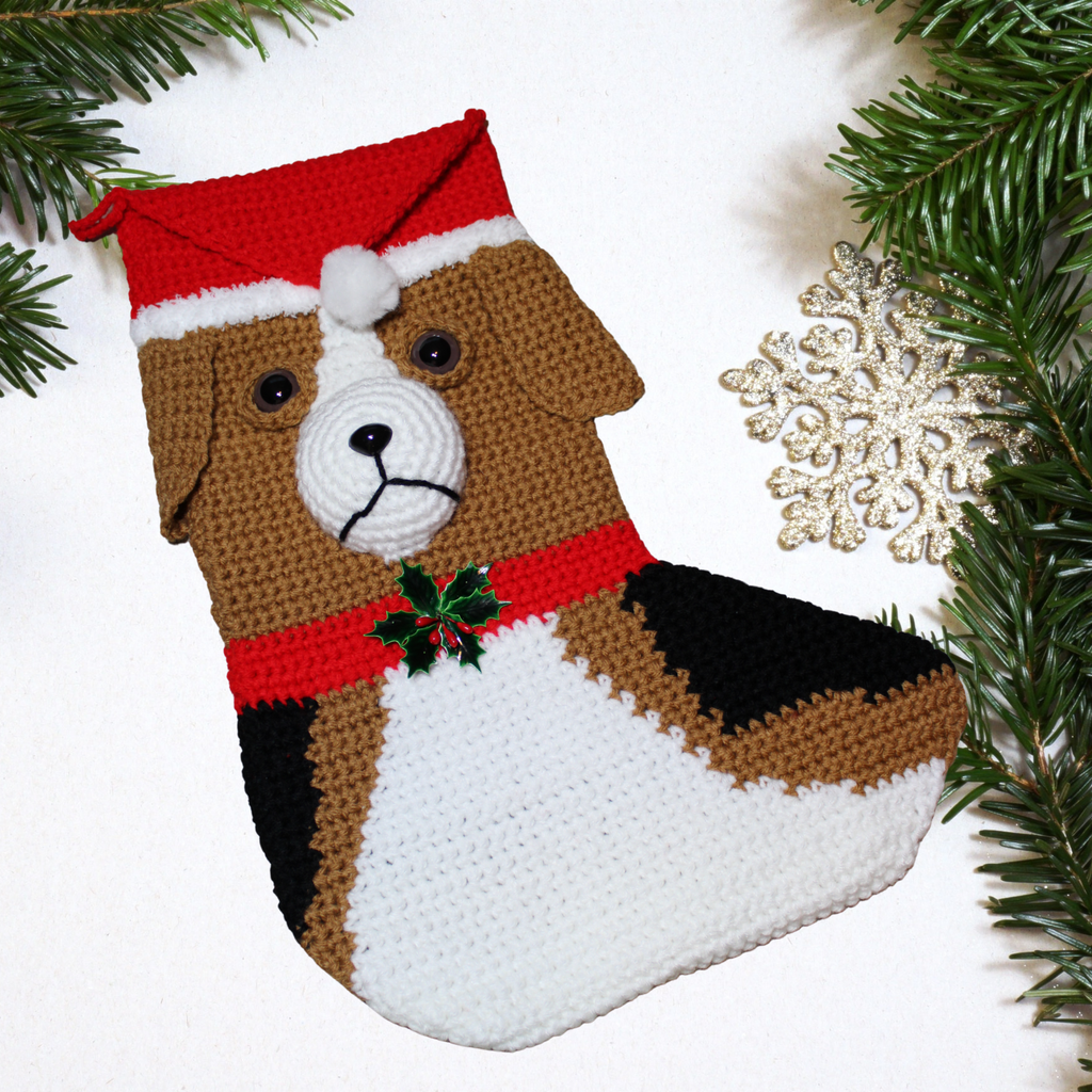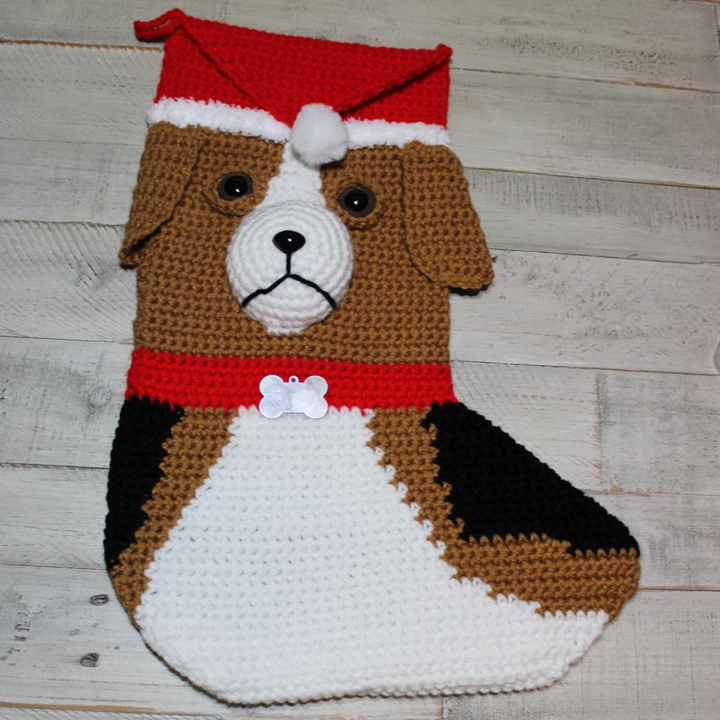 Celebrate the holidays with a stocking as loyal and lovable as your favorite Beagle! This hand-crocheted Christmas stocking features a charming Beagle design—perfect for dog lovers, pet parents, or anyone who wants to add a touch of puppy love to their holiday décor.