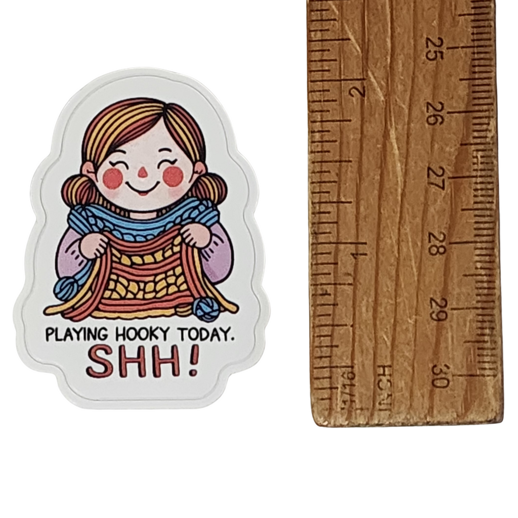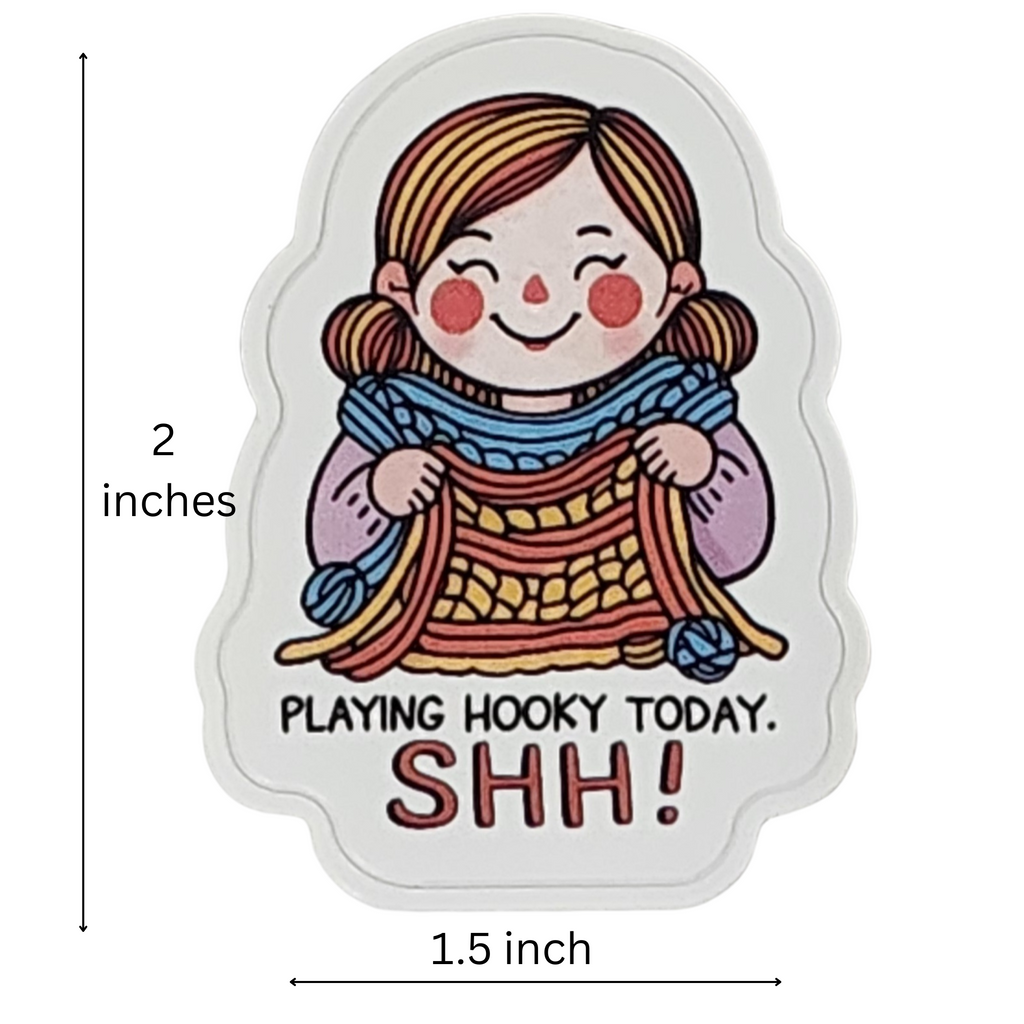 Whether you’re literally skipping work to crochet or just declaring your weekend plans, this “Playing Hooky Today” sticker is a must-have for yarn lovers with a sense of humor! 🧶✨