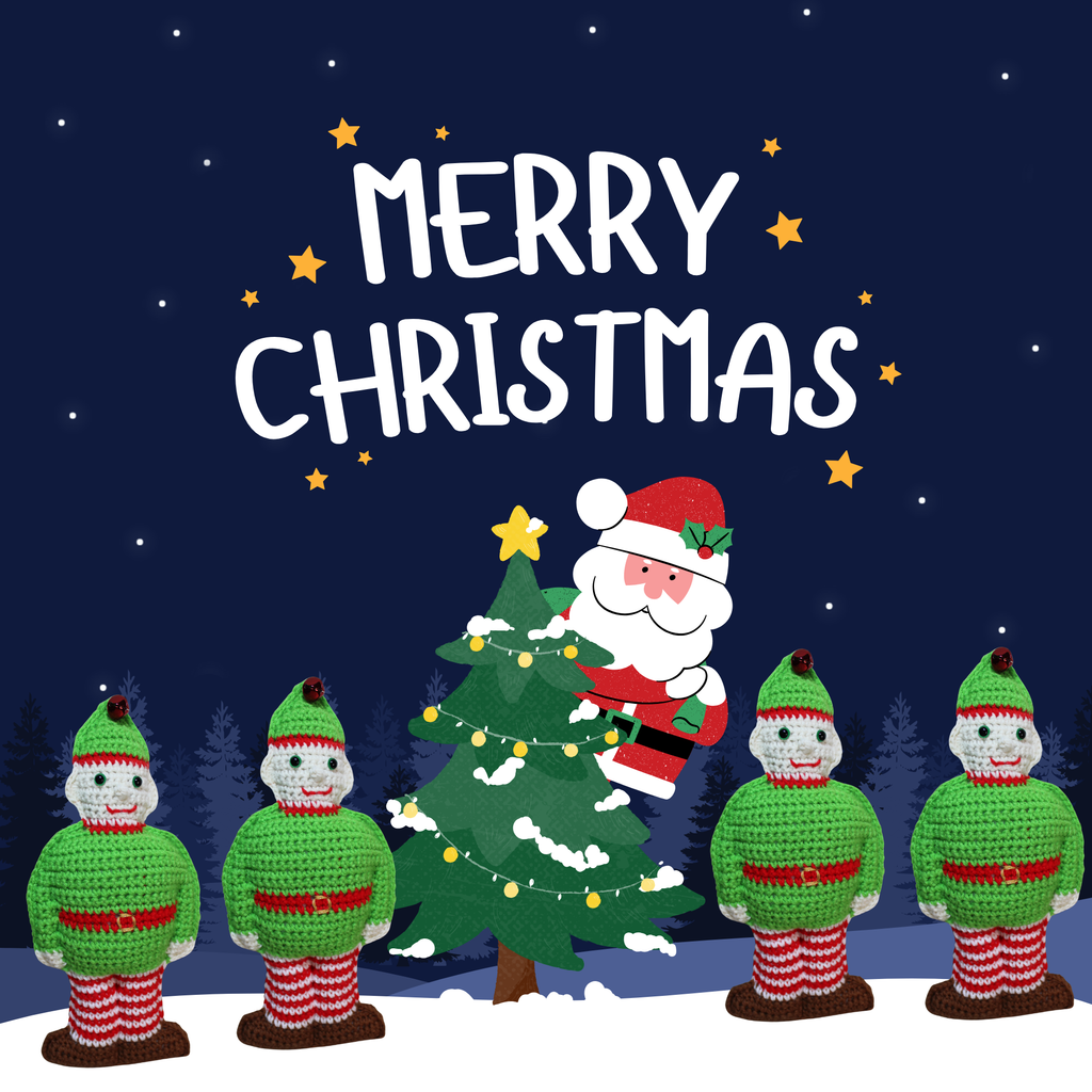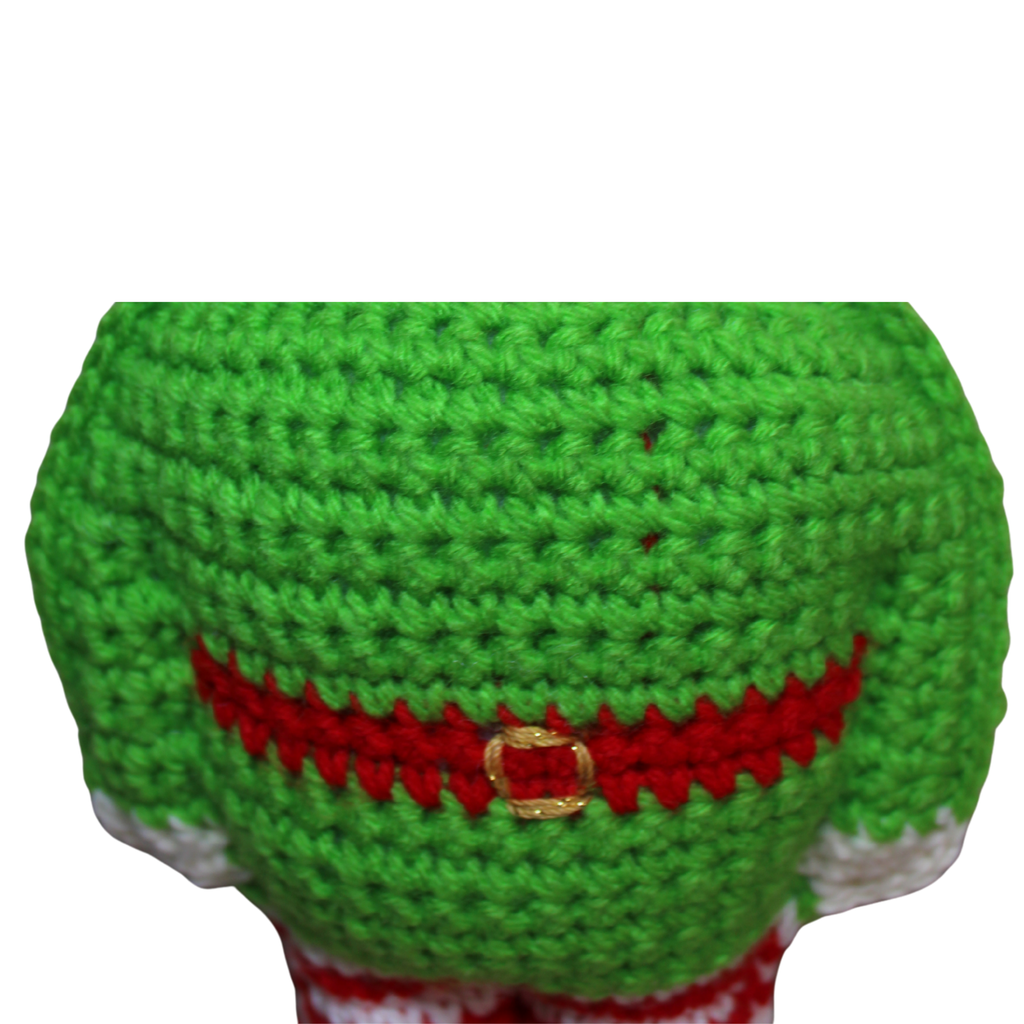 The finished elf has a sweet, classic look with pointy ears, a jolly hat, and striped legs — all designed for maximum cuteness and easy assembly. This pattern is beginner-friendly and works up quickly, making it a perfect handmade gift for kids (or the young at heart!) this season.