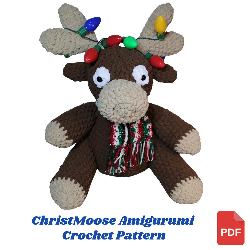 Get ready to stitch up some holiday cheer with this Merry Christmoose Amigurumi Crochet Pattern! 🧶🎅 This adorable moose is all dressed up for Christmas and ready to spread smiles from under your tree to your holiday gift list. With his cozy scarf, friendly face, and festive holiday lights, he’s the perfect handmade companion for the season!
